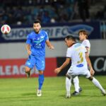 นาทีที่ 25 ชลบุรี เอฟซี มาได้ลุ้นจากลูกฟรีคิกหน้ากรอบเขตโทษ เยื้องไปทางซ้าย จีดี้ คานยุค รับหน้าที่สังหาร ยิงไปติดเซฟของ อภิรักษ์ วรวงษ์ ที่ยังยืนคุมเสา ป้องกันได้อย่างยอดเยี่ยม